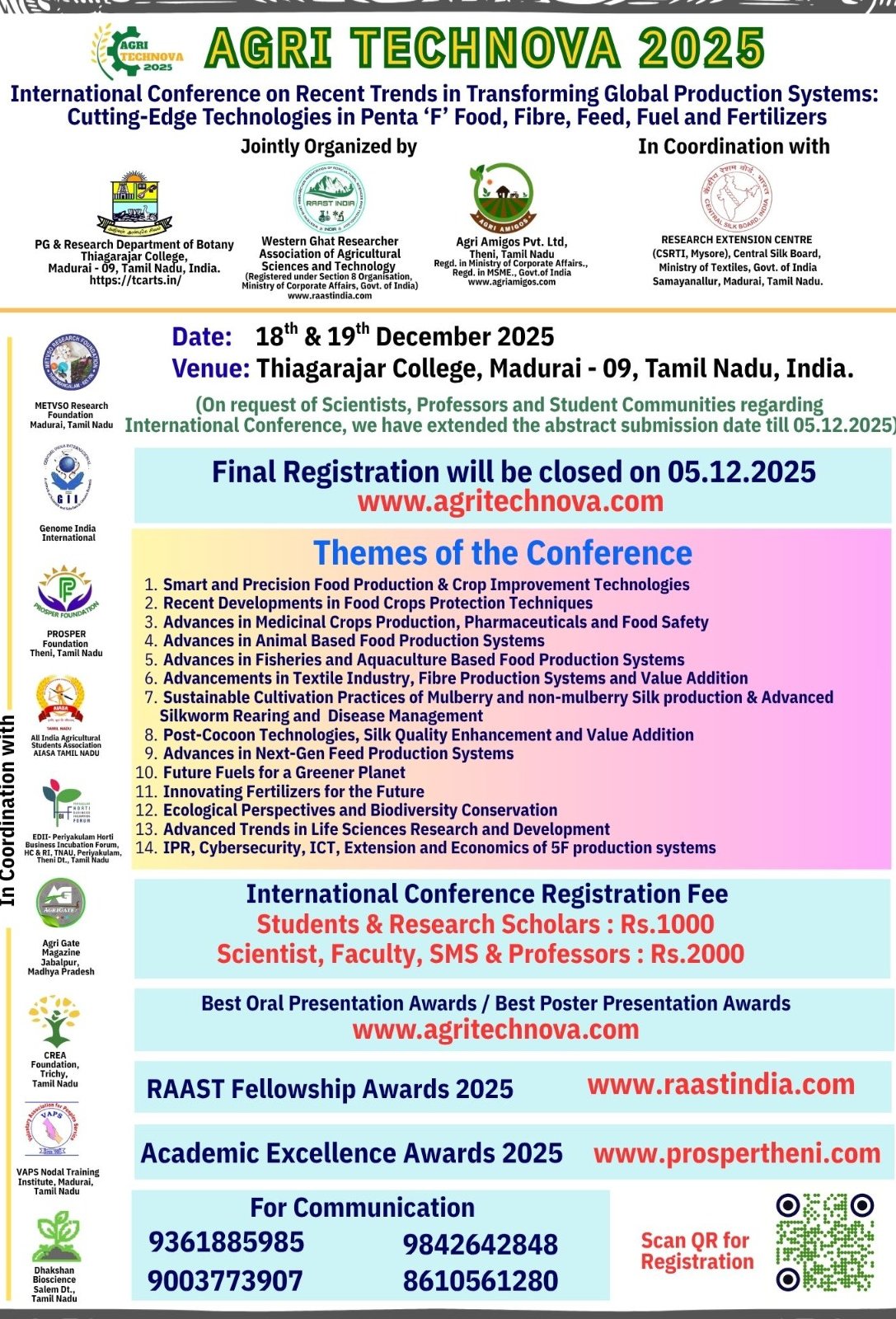 International Conference on Recent Trends in Transforming Global Production Systems: Cutting-Edge Technologies in Penta âFâ Food, Fibre, Feed, Fuel and Fertilizers